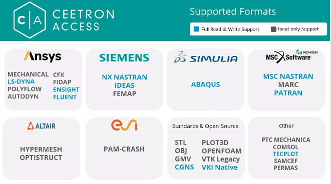 CEETRON Envision支持市面上近20种主流求解器的计算结果数据,例如: